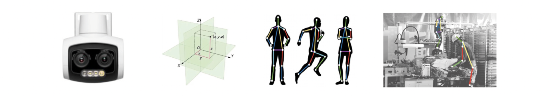 AI双目摄像头,具有景深可识别多人或多点,在不同平面上的位置都会被识别。通过AI定义要求识别的骨骼点,同步返回到服务器,实现虚拟围栏,行为监控。