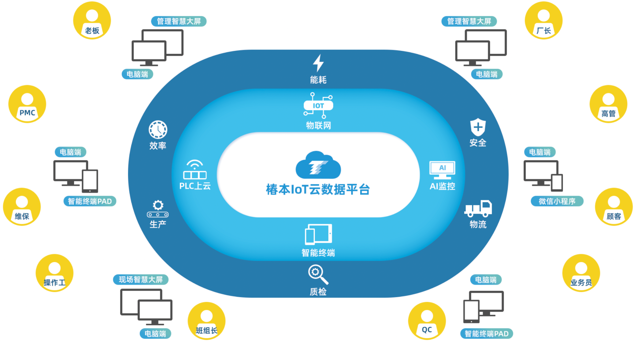 用于物联网平台连接制造设备PLC所用的全网通网关,根据需求读取设备PLC上存储的数据,经椿本数据中台统计分析,生成数据看板与报表或接入客户系统。