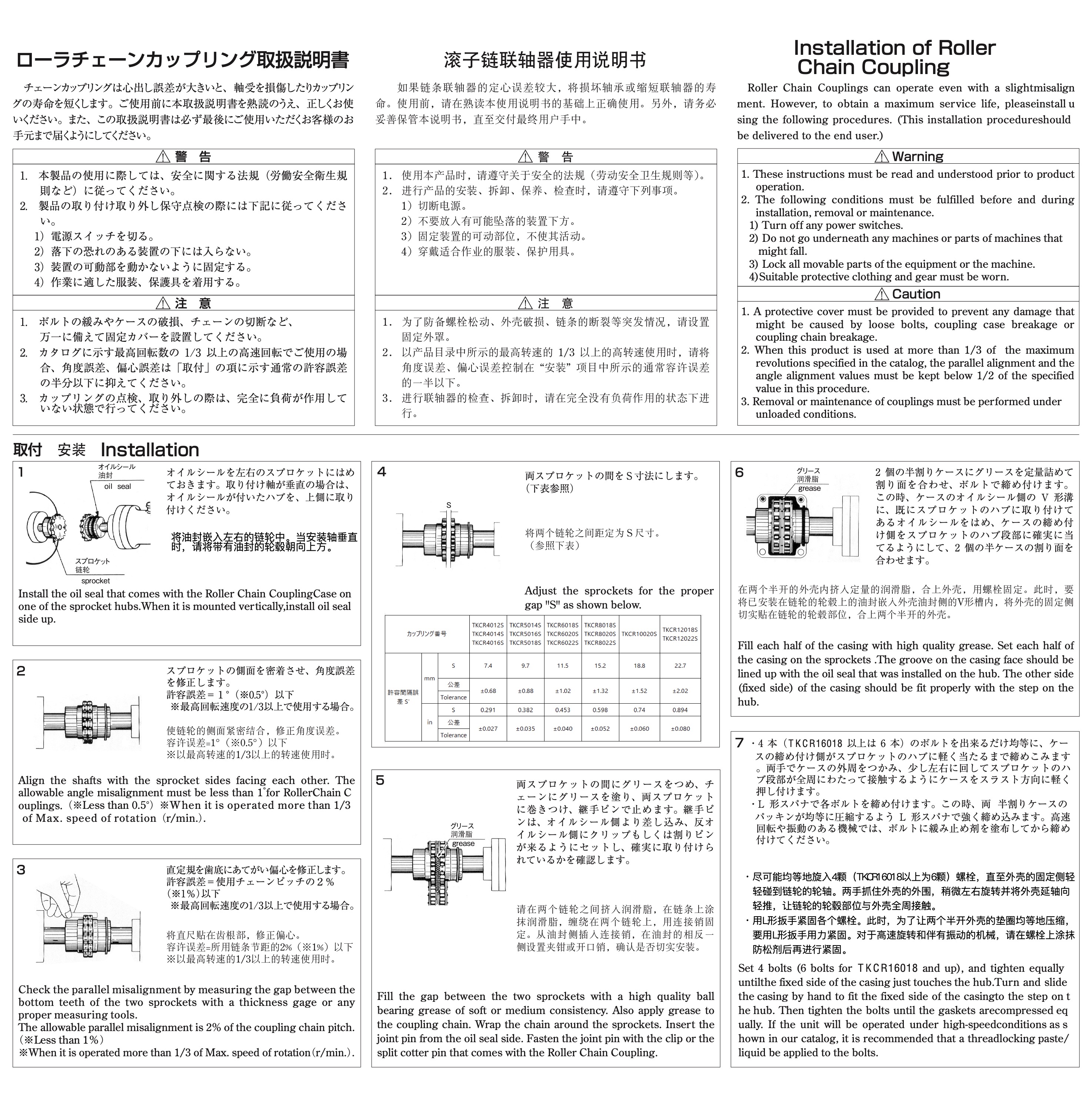 椿凯滚子链联轴器使用说明书