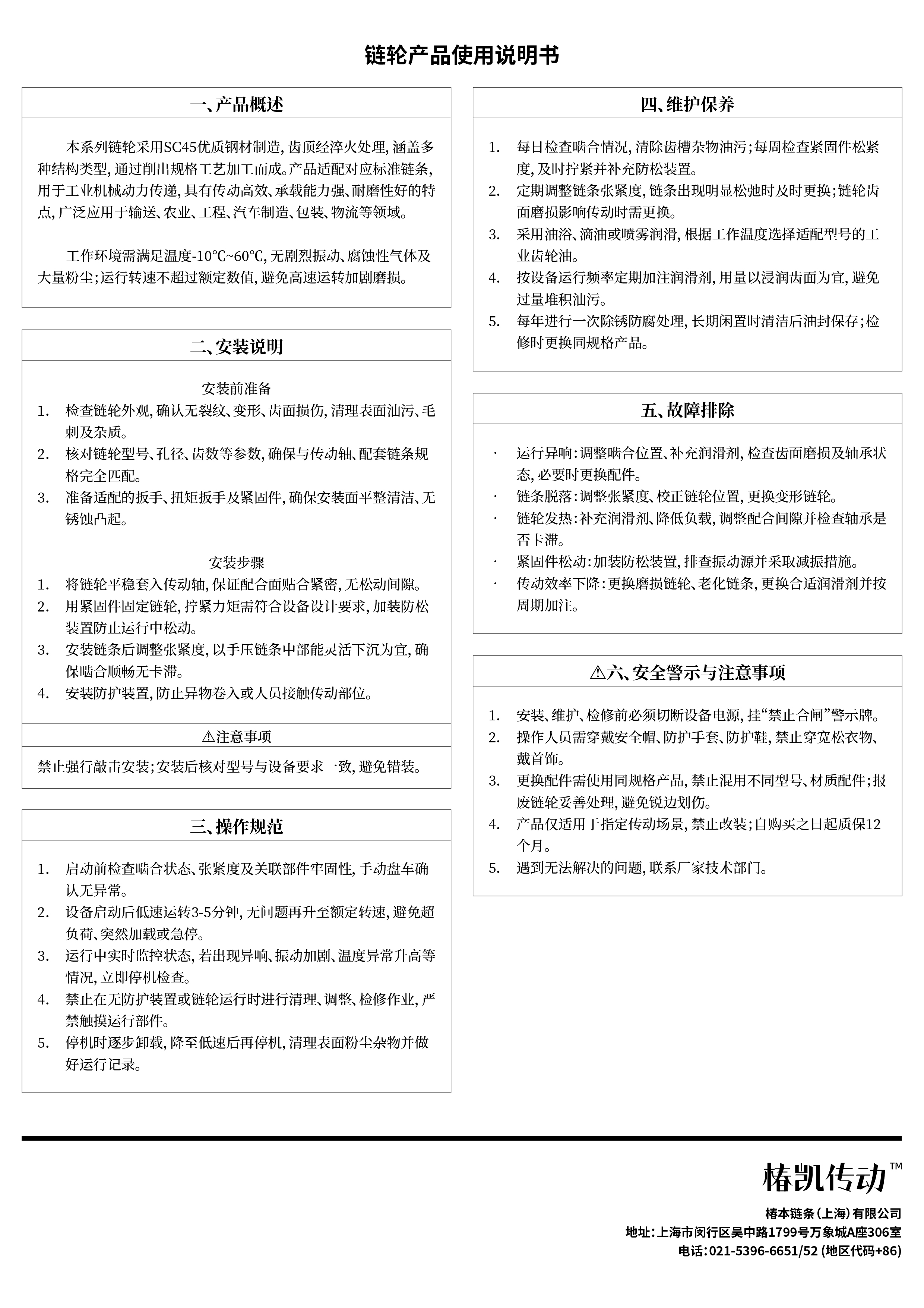 首页 最新动态 使用说明 椿凯链轮使用说明书