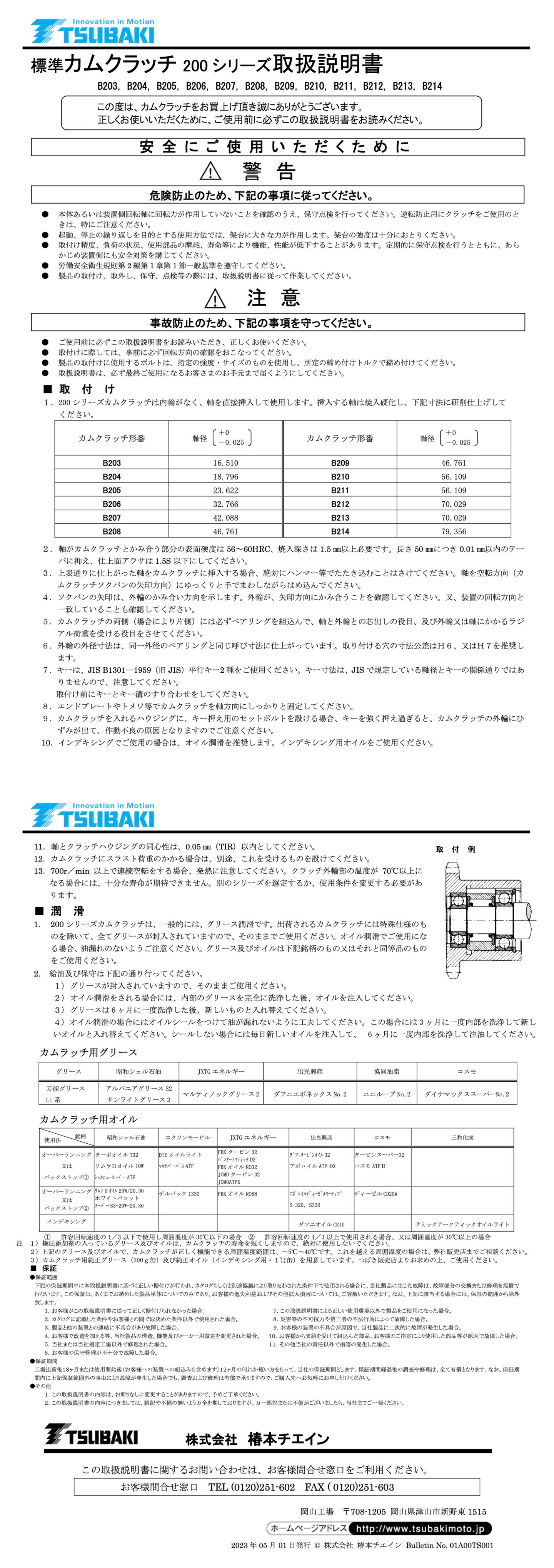 凸轮离合器-200系列 产品说明书(日文版)