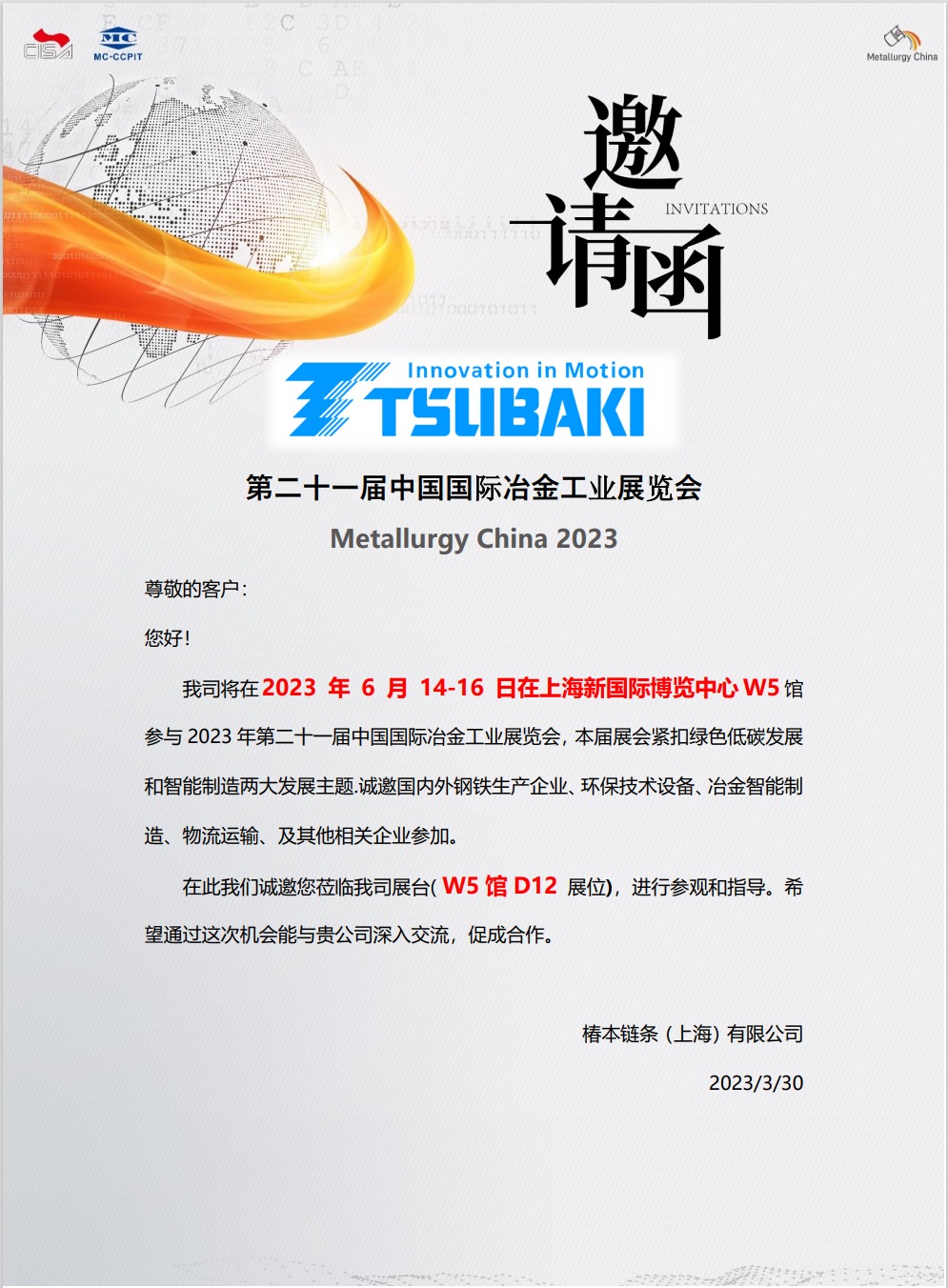 首页 最新动态 参展信息 椿本参展2023年中国国际冶金工业展览会