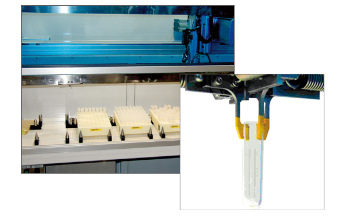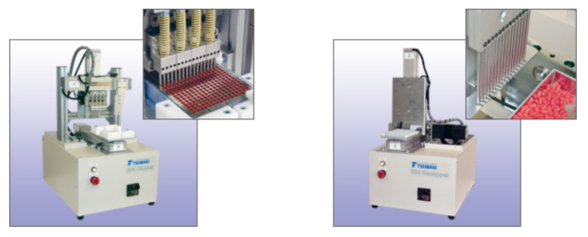 | 在384管子上自动装配瓶盖。还支持其他的管子样式 | 只需设置384管子,即可简单地拆下瓶盖 |