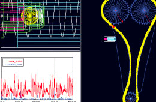 椿本链条产品开发的评价体系,由基于CAE(Computer-Aided Engineering:计算机辅助设计开发)的预测评价技术,以及采用了试验机和实际发动机的实体评价技术2部分构成,可高水平动态保证正时链条驱动系统的功能和耐久性。