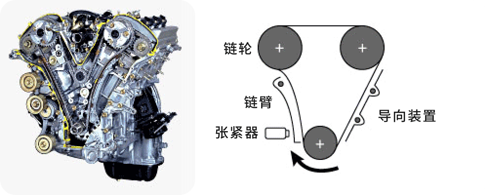 目前,为了适应发动机的高性能化、紧凑化需求,已经从以前的皮带驱动方式变成以链传动方式为主。